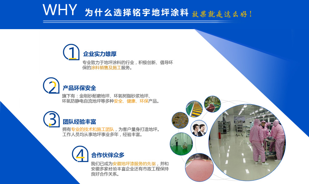 安徽銘宇建材科技有限公司是一家致力于地坪涂料的行業(yè),旗下有金剛砂耐磨地坪,環(huán)氧樹脂砂漿地坪,環(huán)氧防靜電自流地坪,停車場防滑地坪,混凝土密封固化劑和丙烯酸球場,無震動止滑車道、塑膠跑道、工廠地板漆等工程施工服務(wù)。 憑借本身的技術(shù)能力和研發(fā)條件,加上多年對環(huán)氧地坪和耐磨硬化地坪等各類工業(yè)地坪的涂裝、施工的實踐經(jīng)驗、技術(shù)己處于國內(nèi)專業(yè)水平,經(jīng)檢測機構(gòu)檢驗符合相應(yīng)的技術(shù)標(biāo)準(zhǔn)。同時安徽銘宇建材科技有限公司還組建了經(jīng)驗豐富的工程技術(shù)隊伍以及工程施工隊伍、簡歷了完善的售后施工服務(wù)體系,滿足用戶的需要。 安徽銘宇建材科技有限公司是一家積極創(chuàng)新、倡導(dǎo)環(huán)保的涂料銷售及施工服務(wù)的廠家,安徽銘宇建材科技有限...